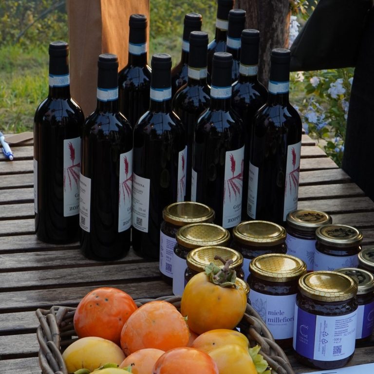Le piante e gli animali sui nostri terreni ci permettono di fornire prodotti freschi e genuini come frutta e vino biologici e miele.